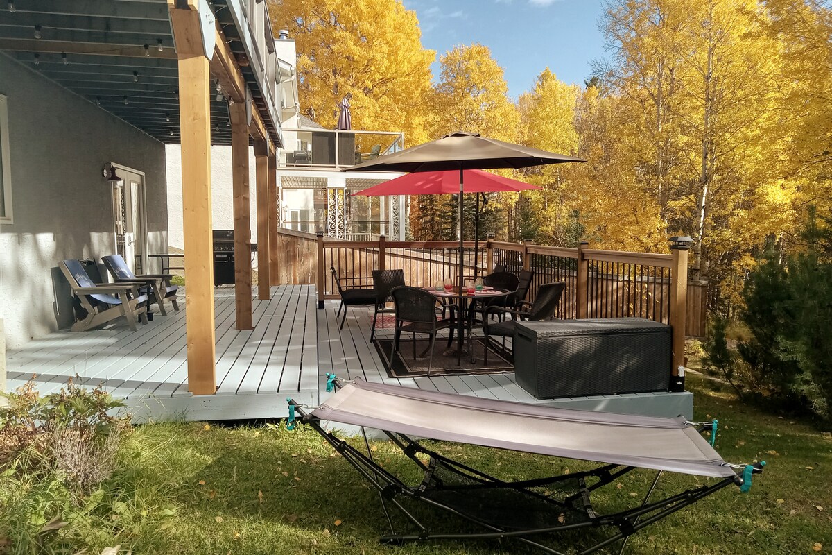 ESCAPADE à Folding Mountain Village ! Situé sur les pentes est des Rocheuses canadiennes, nous sommes à 15 minutes en voiture à l'ouest de Hinton et à 5 min en voiture des portes est du parc national Jasper. Une suite complète entièrement confinée adaptée à 4 à 8 personnes, avec 3 chambres et 1,5 salle de bains et un magnifique patio ! Idéalement situé à distance de marche de l'une des meilleures brasseries artisanales de l'Alberta, Folding Mountain Brewery. Nous sommes également à 10 minutes en voiture des dunes de sable de Brule (amateurs de VTT) !