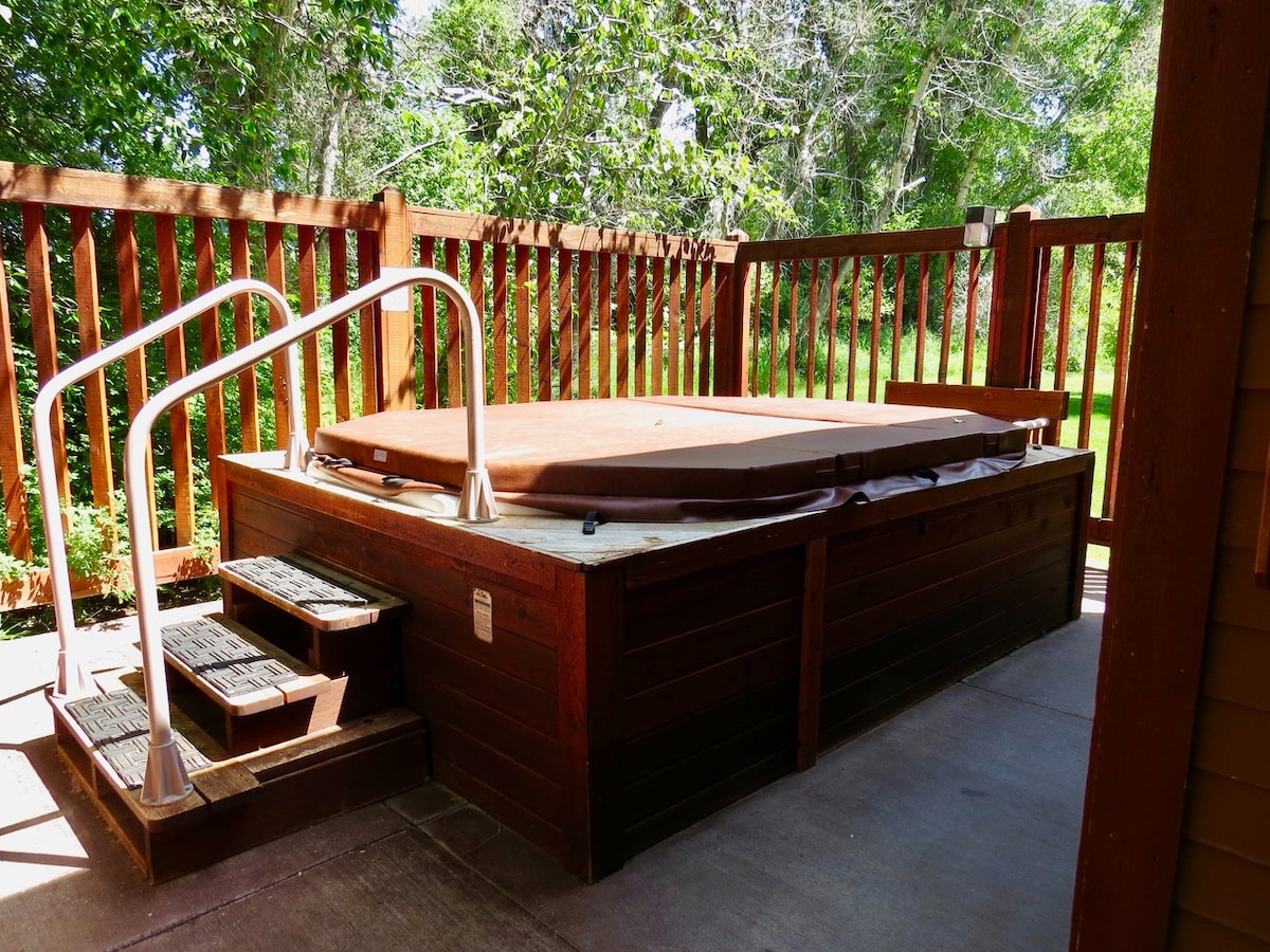 Votre siège social de ski et de vacances estivales vous attend ! Ce condo joliment aménagé et bien approvisionné dispose d'un mobilier et d'un tapis neufs dans un endroit boisé sur Teton Creek ! Profitez de l'espace de vie extérieur sur le balcon avec vue sur les montagnes ! À seulement 15 minutes du Grand Targhee Resort, et un accès facile aux loisirs et aux parcs nationaux, ce qui rend cet endroit parfait pour votre prochaine escapade. Détendez-vous et plongez dans les grands jacuzzis communautaires après une longue journée de ski, de golf, de vélo ou de randonnée !
