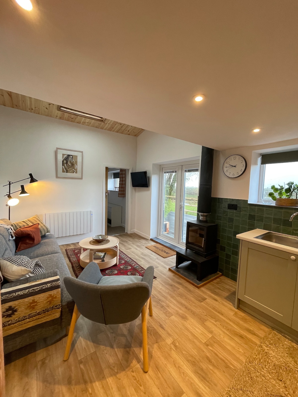 Située dans la superbe campagne des Cornouailles, cette fabuleuse cabane de berger est un bel endroit pour venir et échapper au monde. Fabriquée à la main par Blackdown, la cabane est remplie de luxe et de touches design apportant le meilleur du design et de l'artisanat à votre séjour. À l'extérieur, vous trouverez votre propre coin salon privé avec vue panoramique sur la campagne des Cornouailles. Sortez du jacuzzi chauffé au bois Kirami, enfilez votre peignoir et détendez-vous près du feu le soir.