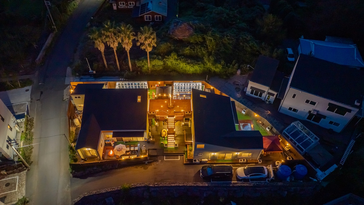 # C'est la maison de ville la plus proche de l'aéroport de Jeju. C'est à 15 minutes à pied de l'aéroport et à 5 minutes en voiture. Si vous regardez vers l'aéroport depuis la terrasse du 4ème étage, vous pouvez profiter d'une vue panoramique en harmonie avec la mer au loin. (Especialement la nuit) Comme il est juste en face de l'aéroport, il a l'avantage de pouvoir se rendre à l'aéroport le plus rapidement possible après la fin du voyage. # Il s'agit d'un bâtiment de 4 étages sur un terrain de 150 pyeong. Tous les espaces extérieurs de l'hébergement ont un paysage soigneusement entretenu par la mère de l'hôte. Il faut l'admirer, mais ne pas le cueillir car elle est entretenue avec beaucoup d'efforts. # Il y a un spa extérieur où vous pourrez profiter de jeux d'eau sur la terrasse du 4ème étage. Il n'y a pas de coût. Il y a une installation de nettoyage automatique, vous pouvez donc l'utiliser pendant que vous l'utilisez. Cependant, il faut du temps pour remplir l'eau, donc vous devez nous en informer à l'avance avant l'enregistrement. Autres précautions Jusqu'à 12 personnes peuvent être utilisées pour 8 personnes, et si le nombre de personnes standard est dépassé, un supplément de 20 000 KRW par personne et par nuit sera facturé.