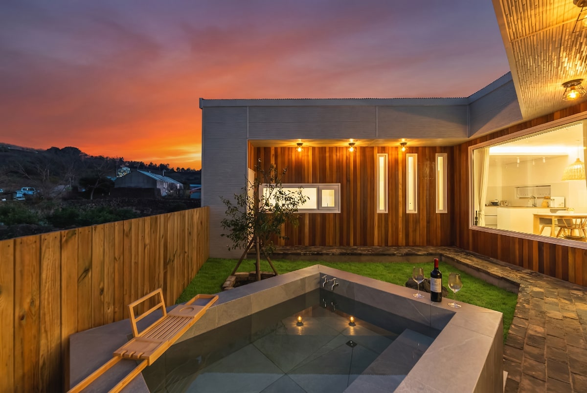 C'est un nouvel hébergement qui vient d'ouvrir. Il s'agit d'un logement émotionnel avec jacuzzi extérieur, Sogil-ri, Aewol-eup. C'est un endroit où vous pourrez profiter du mur de pierre, de l'arbre de camélia et du ciel nocturne dans le jacuzzi extérieur. Vous pouvez utiliser le jacuzzi toute saison et il n'y a pas de frais supplémentaires pour le jacuzzi. Il dispose d'une structure à plusieurs étages, avec un salon, une cuisine et une salle de bain au premier étage, et une terrasse avec un jacuzzi lorsque vous sortez par la porte vers l'extérieur. Il se trouve à 30 minutes de l'aéroport international de Jeju (le tarif du taxi est d'environ 18 000 KRW) et à proximité de l'Aewol Cafe, de Hyeopjae, de Gwakji et de la plage de Geumnyeong. À proximité, il y a un endroit où la chanteuse Lee Hye-ri a acheté, et maintenant il est exploité comme un café, Sogilbyeolha (lieu de tournage de la chambre d'hôtes de Hye-ri, 5 minutes à pied), il est donc bon de visiter ou de se promener. Il n'est pas loin de l'aéroport mais loin du centre ville pour que vous puissiez profiter de l'atmosphère isolée et belle. La route vers Seogwipo et un accès facile à un accès facile. *L'accompagnement est possible à partir de la 1ère année de l'école primaire. Veuillez comprendre que les bébés et les tout-petits ne peuvent pas être accompagnés en raison de problèmes de sécurité tels que les escaliers et l'éclairage. :)