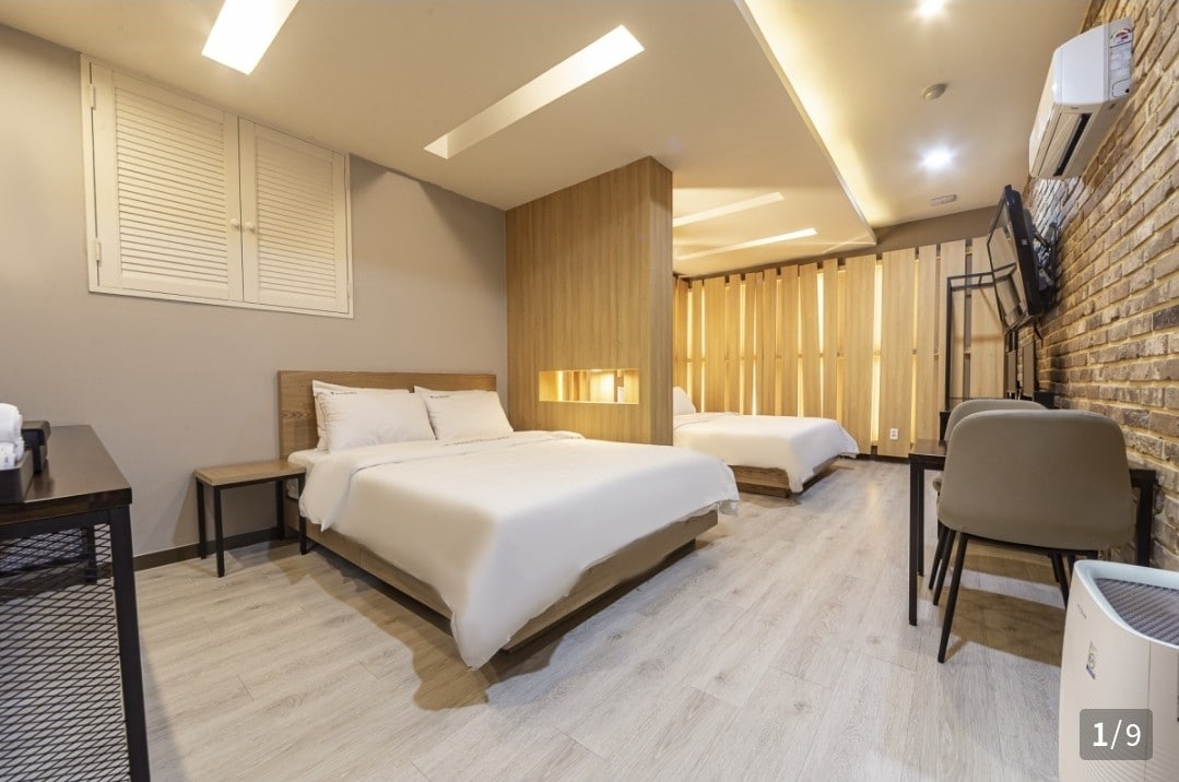 « Srug » est un espace de repos confortable avec des détails bien pensés. Un éclairage chaleureux et une décoration en bois le rendent confortable, et vous pouvez profiter d'un sommeil plus profond qu'à la maison avec une literie et des matelas de luxe de style hôtelier. ✔ Détente • Lit King Size + ensemble de literie haut de gamme • Environnement de couchage confortable ✔ Divertissement • Projecteur de faisceau. • Divers services OTT tels que Netflix, Teabing, etc. ✔ Salle de bain et équipements bien rangés • Ensemble de shampoing, après-shampoing et gel douche de qualité • Sèche-linge de style hôtel, articles de toilette fournis L'établissement ✔ est pratique • Wi-Fi fourni gratuitement. • Petit réfrigérateur (réfrigérateur disponible), bouilloire électrique Instructions ✔ d'arrivée et de départ • Arrivée : après 18h • Départ : avant 14h le lendemain • Arrivée gratuite avec entrée au kiosque sans contact Instructions ✔ de stationnement • Parking pour 5 voitures maximum devant la maison • S'il n'y a pas de place, le « parking public Imdong Ssamji » est à 3-5 minutes à pied.