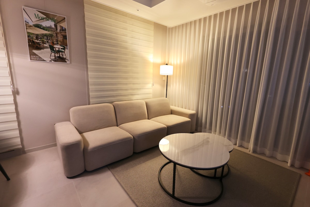 ※ C'est un logement légal enregistré pour l'hébergement. (L'emplacement ou le design des meubles et des accessoires peut varier légèrement.) ※ Veuillez réserver avec le nombre exact de personnes. Le prix de base est pour 2 personnes maximum et peut accueillir jusqu'à 3 personnes, à partir de 3 personnes, un supplément sera facturé. ※ Le mot de passe de la serrure de la porte d'entrée, qui n'est utilisable que par les clients pendant leur séjour, est sécurisé. ※ Nettoyage de la chambre en supplément Cheongsaecheong, Songjeong Voyage en train (marche à pied) à la plage de Mipo, attraction de Haeundae Gunnam-ro, Aquarium, The Bay 101, Dongbaek Island, Haeundae Oncheon, Dalmaji Hill, Haeundae Traditional Market sont accessibles à pied Coupons de réduction de 35% pour Club Di Oasis Water Park & Spa, réduction Aquarium, réduction sur les excursions en yacht Possibilité de se rendre à la plage de Haeundae en 1 minute (de l'autre côté de la rue) Bagagerie gratuite 24h/24 (disponible même après le départ) Parking gratuit, Netflix, Wi-Fi disponible Utilisation gratuite du centre de remise en forme et du terrain de pratique de golf À distance de marche de la station de métro Haeundae, du terminal de bus interurbains et de l'arrêt de bus en ville