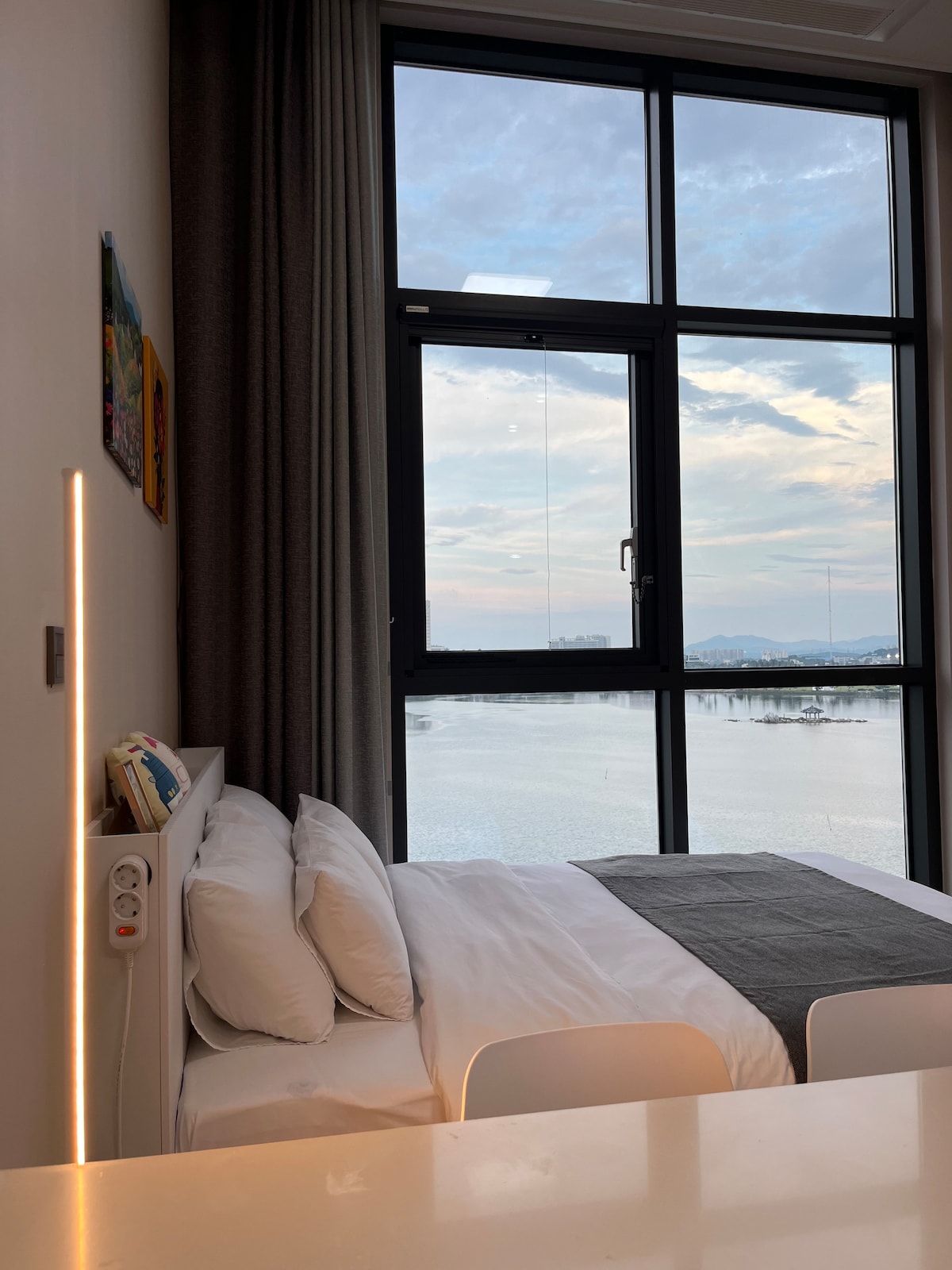C'est un hôtel résidentiel de haute mer située à Hosungga, Gyeongpo, Gangneung. Il est situé au 5ème étage d'un immeuble de 7 étages d'Hy Ocean, qui a ouvert ses portes en 2020, et est une chambre avec vue sur le lac où vous pourrez profiter d'une vue sur le lac calme toute la journée. Vous pouvez vous rendre au lac Gyeongpo et à la plage de Gyeongpo en 3 minutes à pied, et vous pouvez visiter les principales attractions touristiques de Gangneung en 10 minutes en voiture. Vous pouvez utiliser le parking souterrain dans le bâtiment (utilisation gratuite du parking public lorsqu'il est plein) et utiliser le rooftop au 8ème étage. Il y a une supérette au rez-de-chaussée du bâtiment. Commencez votre journée en regardant le soleil du matin scintiller sur le lac Il est bien situé pour guérir les corps et les esprits fatigués dans la mer de la mer de l'Est et la forêt de pins. Nous vous aiderons à faire de bons voyages et à laisser des souvenirs :)