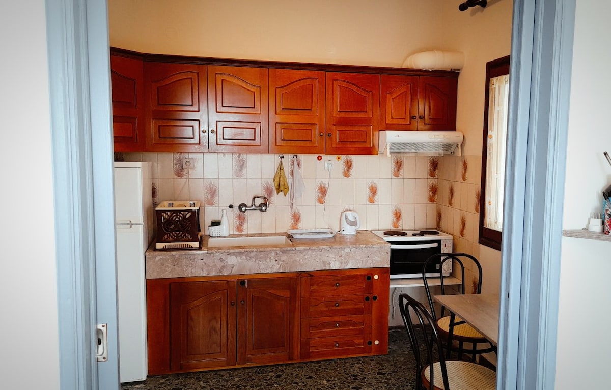 L'appartement sur la plage est un appartement au premier étage, avec une vue incroyable sur le coucher du soleil sur la mer Égée. Il dispose de 2 chambres, d'un salon, d'une cuisine et d'une salle de bain. Assez grand, 70 m2, pour couvrir tous vos besoins, à seulement 300 mètres du centre du village.