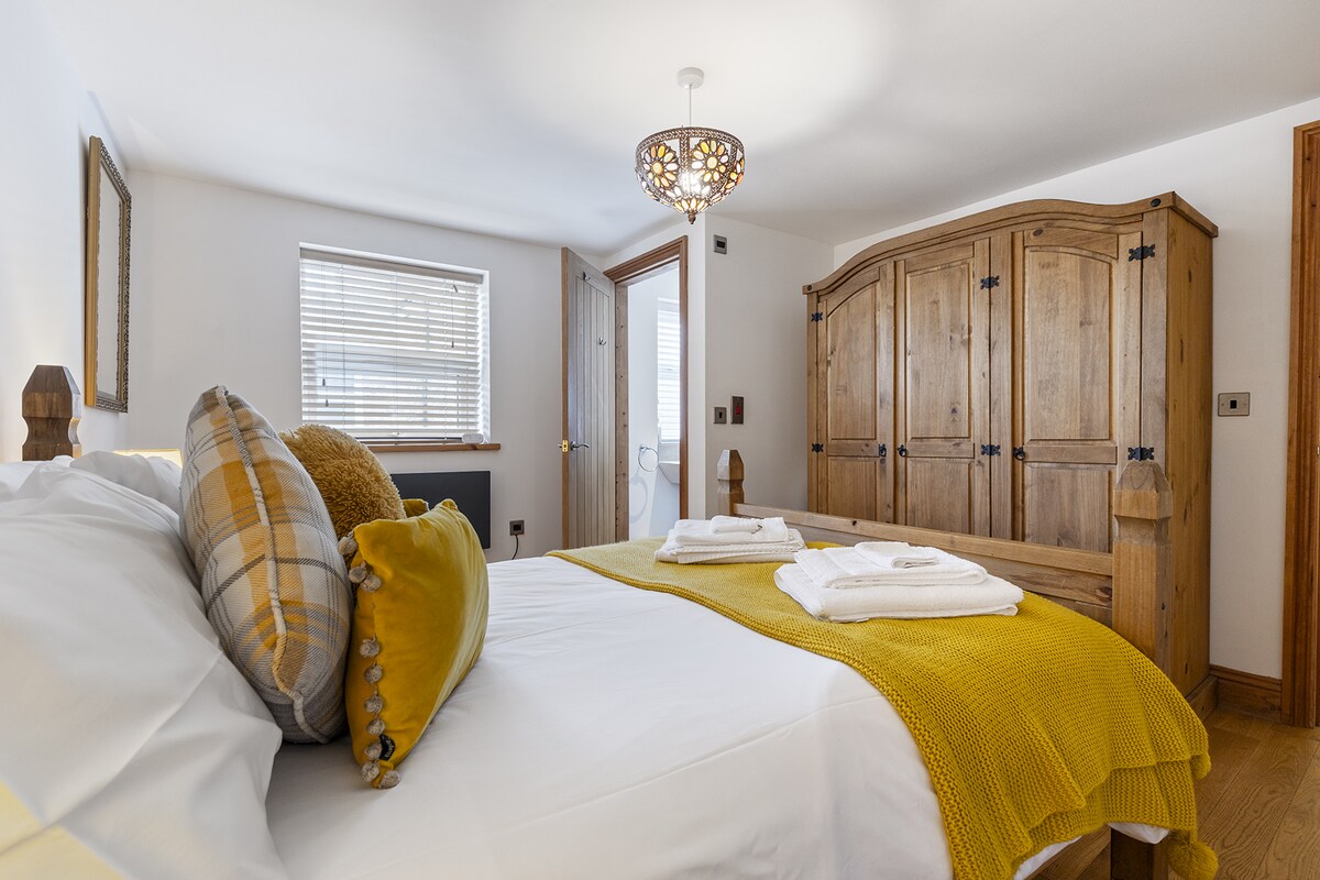 Profitez de notre élégant espace de style « loft » new-yorkais au rez-de-chaussée avec 1 lit. Directement sur la rivière et l'un des rares appartements comme celui-ci dans la ville. Regardez l'eau couler depuis votre siège près de la fenêtre, si proche que vous aurez envie de tendre la main et de plonger ! Le bâtiment industriel le plus historique de York (1864), si paisible mais à 5 minutes du centre-ville. Mélange élégant de fraîcheur et de confort, briques d'origine du 19e siècle. Les spécifications élevées comprennent une télévision QLED, un lit king size et une cuisine moderne avec plan de travail en quartz. Propriété/exploitation privée.