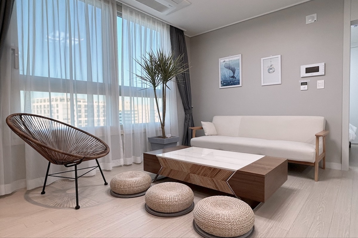 Le filet Chanyeon est équipé de 2 lits queen size et 1 lit super simple dans chaque chambre, et 3 ensembles de literie supplémentaires sont inclus. (1 ensemble : tapis de sol super simple + couette + 1 oreiller) Nous fournissons un ensemble de literie en coton haute densité d'hôtel. Milky ✨️Way D&M a sélectionné et préparé 22 types d'espaces uniques. Si la date du logement que vous recherchez est fermée, consultez un autre logement.✨️ Veuillez contacter le logement si vous souhaitez prolonger le✨️ départ ou saisir le nombre maximum de personnes.✨️ Milky ✨️Way D&M est comme les étoiles dans le ciel, Nous voulions créer un espace où votre temps pourrait briller. Capturez des souvenirs dans un seul espace, de l'amour et du plaisir dans un seul espace.✨️ ✨️Yuseong Hot Springs Outdoor Bath Experience Center, NC Department Store, Bongmyeongdong Street, Hanbat Arboretum, Daejeon Shinsegae Department Store, Galleria Time World et Yuseong Intercity Bus Stop peuvent être appréciés en moins de 10 minutes en voiture. ✨️