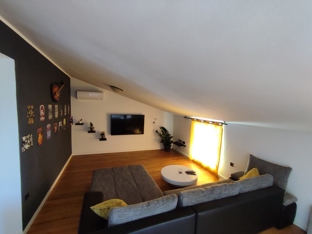 Luxury studio apartment with kitchen, bathroom, Tv and air conditioner ideal for two person. Free parking also included. Bus station, Gaženica port and City Center are 5min car drive. The beach is 300m away from apartment.