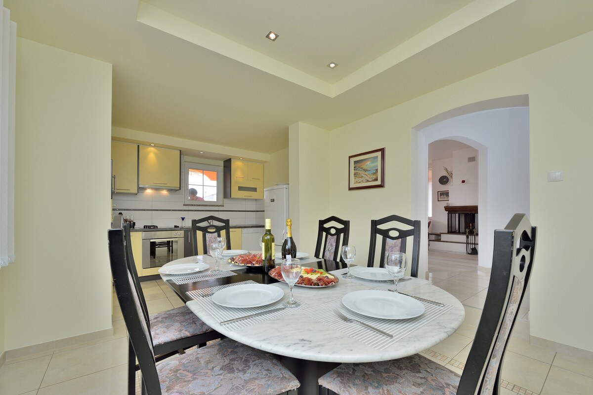 La charmante villa Luna pour jusqu'à six personnes offre tout le confort que l'on peut rechercher dans une maison contemporaine. Elle est située dans le centre-ville de Zadar, à seulement 5 minutes en voiture de la partie historique de la ville de Zadar. Son emplacement idéal vous offre la possibilité de profiter de la vieille ville, mais aussi d'un sentiment unique d'intimité sur sa terrasse à couper le souffle avec piscine et beau jardin. La villa se compose de 3 chambres, 2 salles de bain, de toilettes séparées, d'une cuisine ouverte, d'une salle à manger et d'un salon avec écran LCD.