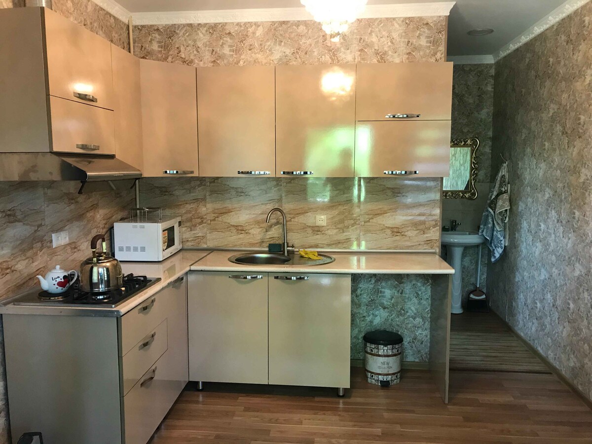 Appartement confortable avec jardin et parking dans un quartier calme en plein centre de Zakatali. Dans les magasins à distance de marche, la place centrale, la rivière, le bazar et autres objets nécessaires, vous serez accueilli par Maîtresse Marina , placera du linge frais pastel, de nouvelles réparations, le silence et l'agrément feront de vos vacances avec nous un moment inoubliable ! Nous organisons un transfert impeccable vers notre établissement au bord du lac, vous allouons un gazebo et vous offrons nos délicieux plats ! Hope Lake Apartment est un bureau représentatif de Nore Lake guest house .
