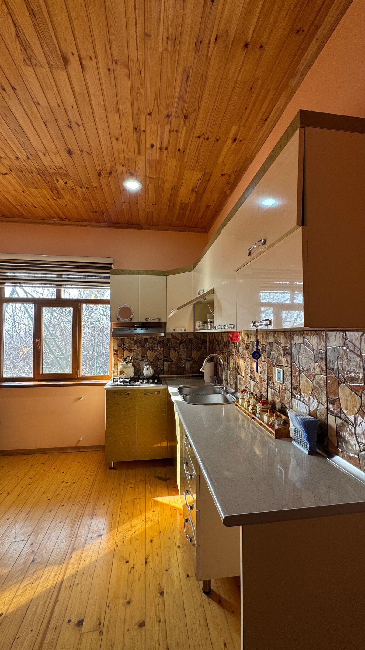 Détendez-vous dans notre maison de 3 chambres dans le pittoresque village de Zilban, Zaqatala. Comprend un salon, une cuisine et 2 salles de bain, idéal pour les familles ou les groupes. Cadre calme et naturel avec tout le confort moderne. Seules les familles ou les groupes organisés sont acceptés. Pièces d'identité requises à l'arrivée. Profitez de la tranquillité, de l'intimité et du charme local. Wi-Fi, eau chaude et stationnement disponibles.