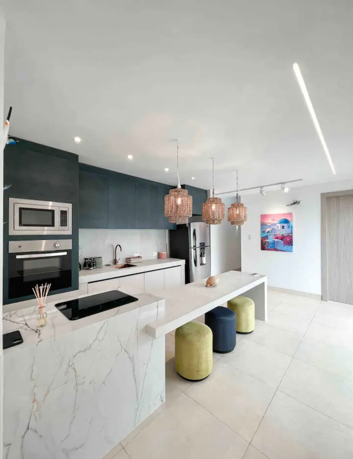 PB Penthouse expérience exclusive face à la mer si vous recherchez l'élégance, la détente et la sécurité à 300 m de la plage avec vue panoramique. Comprend : >Jacuzzi privé tempéré >Rooftop vue sur la mer >4 chambres avec A/C, salle de bain et rideau >Parking privé pour 1 véhicule (rue ouverte de parkings et autres avec supplément) >Piscine, gardien 24/7, ascenseur, eau chaude >Wifi rapide, Netflix, Youtube >Réfrigérateur, cuisine, lave-linge >Cafetière, micro-ondes, airfryer, blender >Serviettes, linge de lit et papier