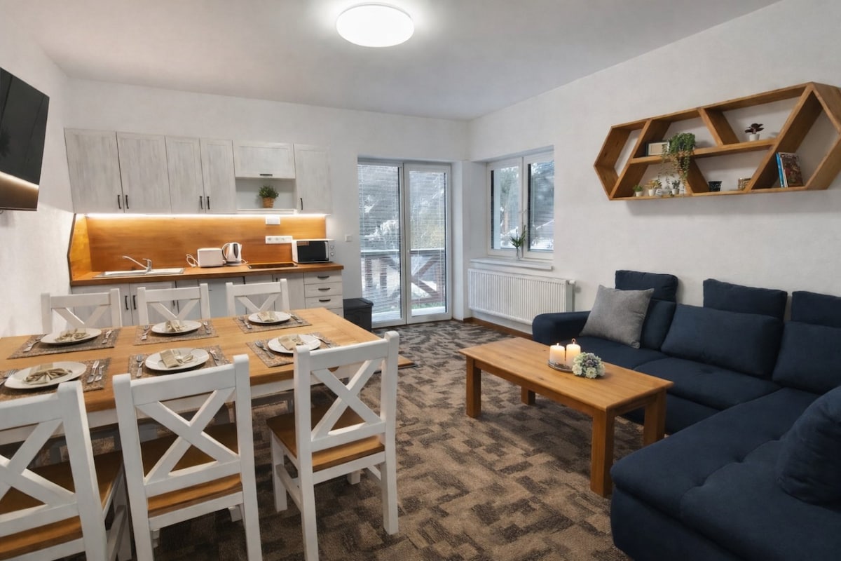 L'appart-hôtel privé propose deux appartements d'hôtes près du lac de Tajch. Ils offrent un confort et une intimité agréables à l'intérieur et en même temps d'agréables activités récréatives, culturelles et sportives dans les zones du lac. Particulièrement adapté aux familles avec enfants ou aux vacances entre amis. Ne convient pas aux fêtes orageuses ou aux célébrations bruyantes. Détendez-vous et détendez-vous avec la possibilité de nager dans le lac, des activités sportives, des randonnées intéressantes, des événements culturels agréables en été et la possibilité de skier dans les environs en hiver.