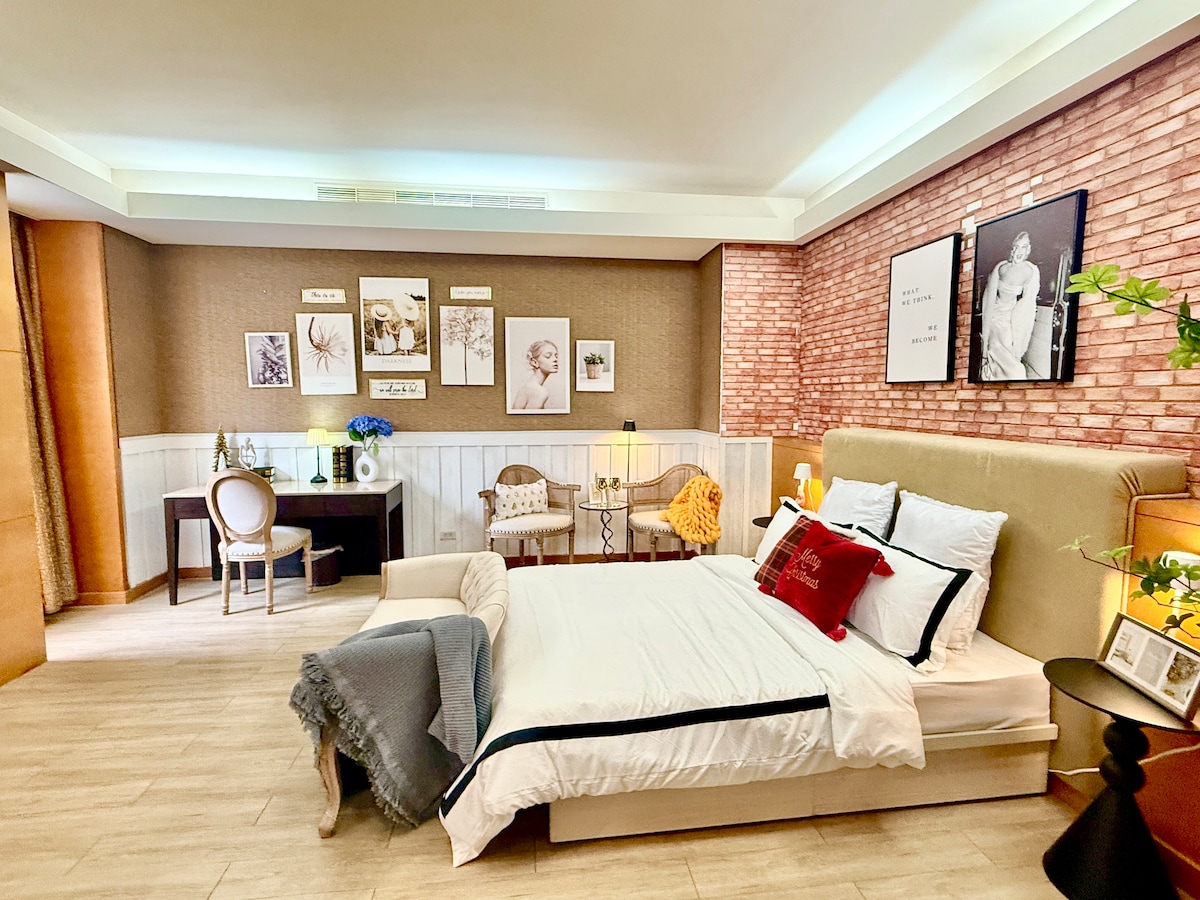 Zhonghe Jing 'an MRT Walk 15 minutes Il y a un arrêt de bus devant la porte, de nombreux bus vont à la station de métro Jing'an, prenez « Orange 5 » directement à la porte de la station de métro Jing'an, pas besoin de marcher, il y a un parking payant à côté Grande terrasse 11e étage arrière bâtiment calme, 3 mètres 6 mezzanine Nakajima verre noir vent Avec réfrigérateur à porte LG knock (machine à glaçons) Comprend un distributeur de boissons intelligent (des boissons chaudes et froides sont instantanément disponibles au robinet) Télévision 62 pouces (Netflix) avec Wi-Fi Friteuse à air, micro-ondes, aspirateur Dyson 1 machine à laver, 1 sèche-linge, veuillez éviter d'utiliser les deux en même temps, cela provoquera une panne de courant 1 salle de bain avec baignoire à eau chaude, la baignoire est très profonde, si les personnes âgées estiment que c'est dangereux, il n'est pas recommandé de réserver Intérieur 15 m², balcon 2 m² 2 personnes, 1 lit Queen Size 1 200 $ NT supplémentaires par jour pour 1 personne supplémentaire (matelas simple au sol fourni) Interdiction de fumer à l'intérieur (balcon non autorisé par le règlement de l'immeuble) Si vous utilisez Uber Eat/Foodpanda, votre commande sera livrée à la table dans le hall du 1er étage et vous pourrez la récupérer en bas. Le bus de l'aéroport 1968 peut aller à la gare de Jingan (environ 1 heure) 40-60 miles en taxi depuis l'aéroport Désolé, parce que la maison est pleine tous les jours, l'arrivée anticipée et le départ tardif affecteront les voyageurs avant et après, nous ne pouvons donc pas le fournir🥹