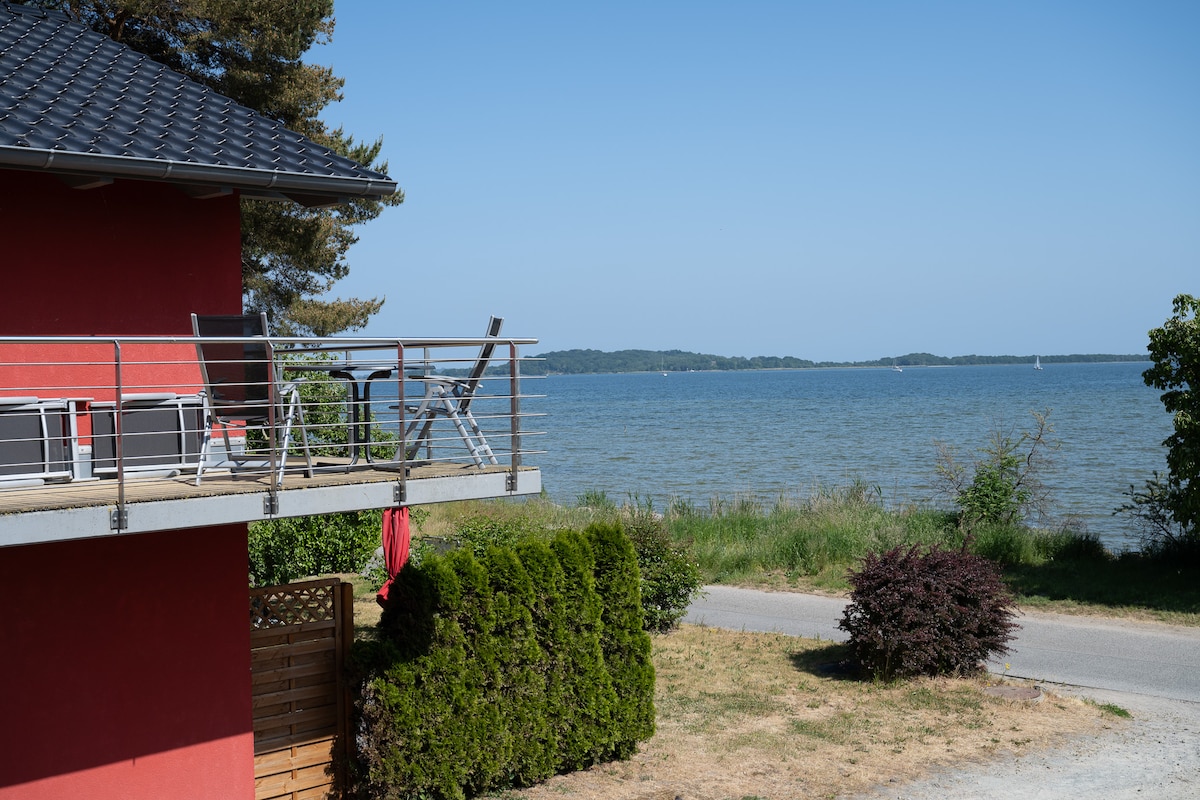 Détente dans ce lieu spécial et calme. Que ce soit en été avec un verre de vin sur la terrasse ou en hiver avec un thé devant la cheminée, profitez toujours de la vue fantastique sur les vagues du Hagenschen Wiek, c'est la détente comme vous le souhaitez. Après une journée sur la plage, une balade à vélo ou une promenade dans le Mönchgut, probablement la plus belle partie de l'île de Rügen, vous aurez hâte de revenir dans cet appartement. De vraies vacances ici !