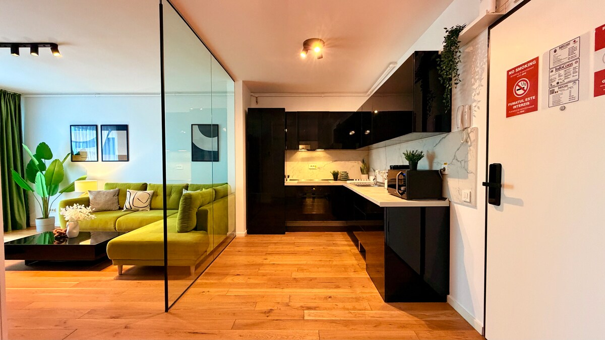 Bienvenue à Mido Lumo, un appartement élégant et spacieux conçu pour un séjour sans accroc. Avec deux chambres et deux salles de bain, cette retraite moderne est parfaite pour les familles, les amis ou les voyageurs d'affaires. Profitez d'une cuisine entièrement équipée, d'un salon confortable et d'une connexion Wi-Fi haut débit. Arrivée autonome pratique via une réception sécurisée avec surveillance de garde 24h/24. Le complexe dispose de 2 restaurants sur place, et LIDL et Mega Image sont à quelques pas, ce qui rend les produits de base et les restaurants facilement accessibles.