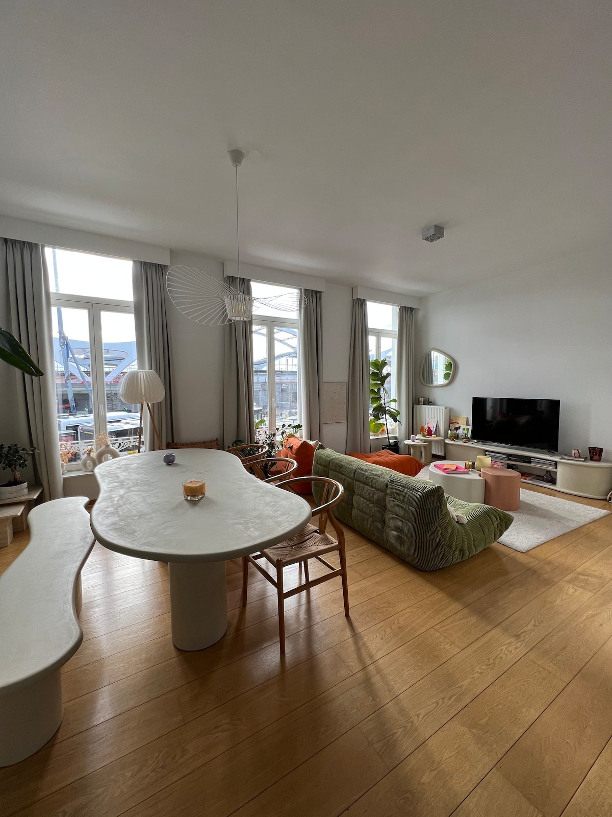 Bright and uniquely designed apartment where everything is handmade by “Ciré Crafts by Katinka,” perfectly located right across from Mechelen train station. Situated on the first floor, accessible via a spacious staircase. The apartment features one bedroom with a double bed, one bathroom, a kitchen, living area, and a terrace. All amenities are provided, including Wi-Fi and Netflix. The space can also be flexibly rented by the hour. Optional parking and bike rental available.