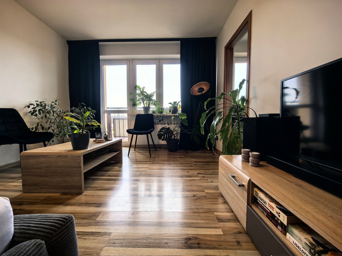 Bel appartement rénové avec terrasse à proximité des montagnes et de l'aéroclub à Bielsko-Biała, où vous trouverez tout ce dont vous avez besoin et où vous vous sentirez chez vous. Cuisine et salle de bain de haut niveau et de qualité. Tous les appareils électroménagers et la vaisselle nécessaires sont disponibles. Idéal pour les affaires, les événements sportifs et les rassemblements culturels sur une courte période. Entièrement meublé avec télévision connectée et Wi-Fi. Les commerces les plus proches (Żabka et Lewiatan) sont à 150 m.